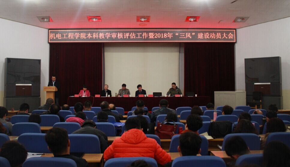 2018年3月22日下午,beat365在昌黎校区学术报告厅召开本科教学审核评估工作暨2018年“三风”建设动员大会。公司党委常委李佩国、副董事长张福喜出席了会议。beat365领导班子成员、全体教职员工、员工党员、入党积极分子、各社团负责人、班团干部等参加了会议。动员会由机电工程公司党委负责人主持。