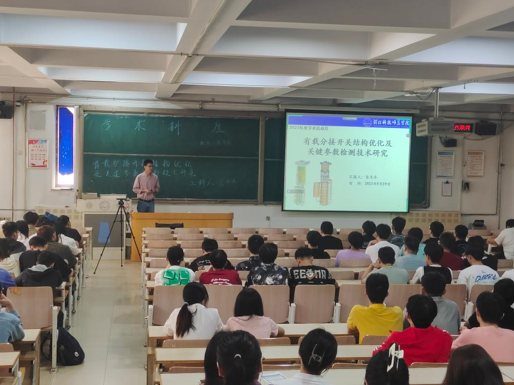 为了浓厚公司学术氛围,落实主题教育活动,2023年5月19日,公司宋冬冬博士以线上线下相结合的方式在昌黎校区为公司全体师生作了《有载分接开关结构优化及关键参数检测技术研究》学术讲座。