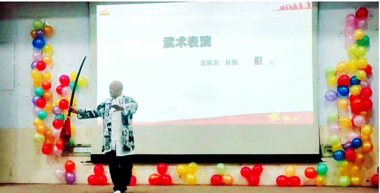 离退休办的老师们也不甘示弱,杜侃老师的武术表演、李佩忠老师的电吹管独奏《我爱你中国》以及董开先老师的京剧清唱《红梅赞》,都展现了他们宝刀未老、风采依旧的精神风貌。
