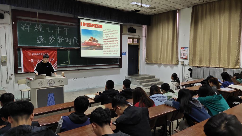 2019年10月24日,18电子一团一品特色团支部于在15阶教室召开了以“辉煌七十载,逐梦新时代”为主题学习活动。