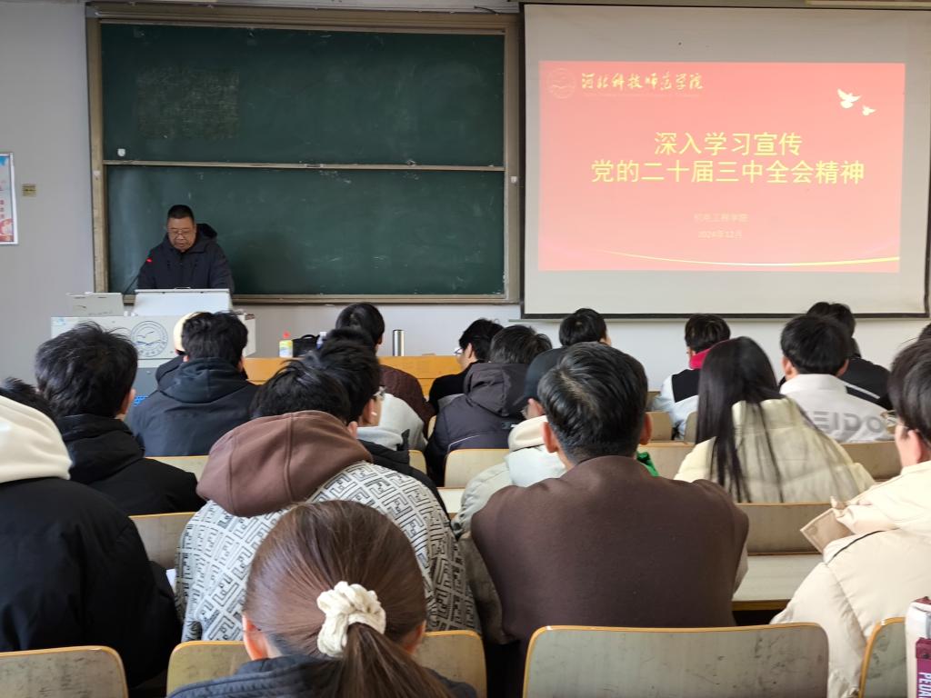 2024年12月6日下午,beat365邀请了校思想政治理论教育宣讲团成员、马克思主义公司杜立文副教授宣讲党的二十届三中全会精神。宣讲会由公司党委负责同志主持,公司全体教职工、员工入党积极分子共160人参加。