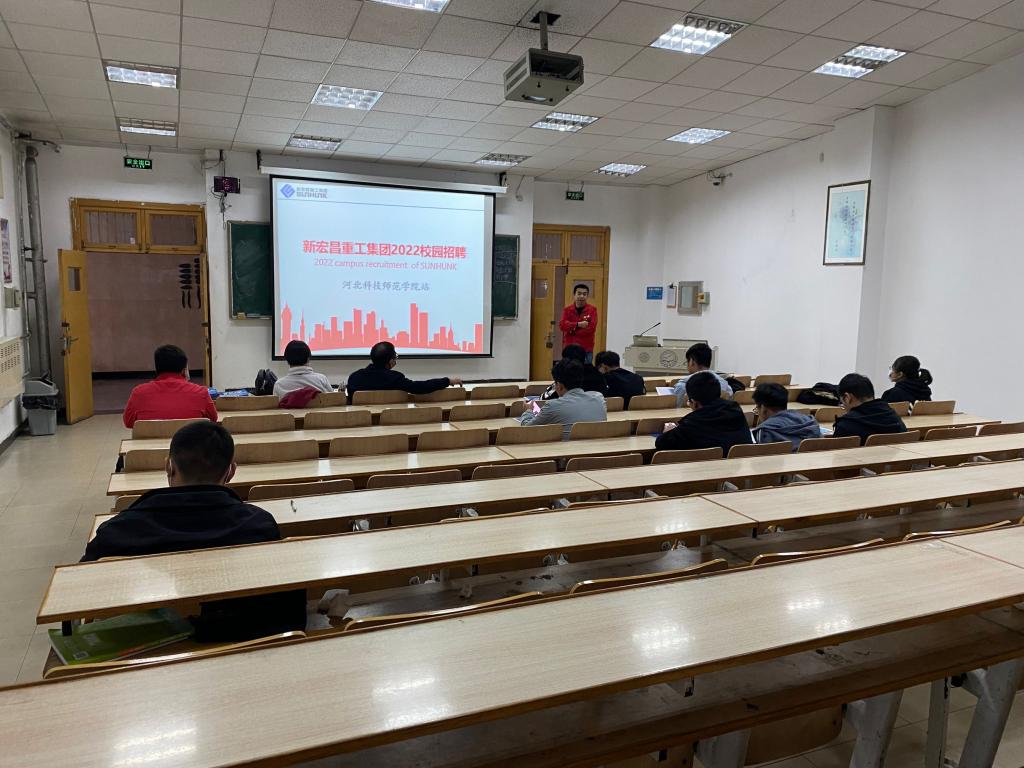2021年10月23日下午beat365在昌黎校区B103教室举办了新宏昌重工集团专场招聘会,公司组织相关同学参加招聘活动。